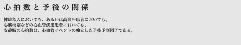 - 収縮能低下を有する冠動脈患者のうち、心拍数は70拍分以上の患者では心血管死が有意に増加する。